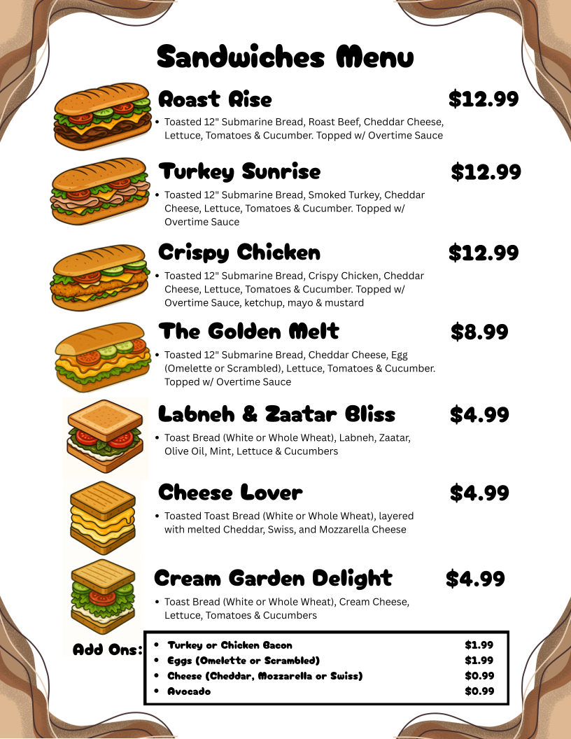 OverTime Cafe Menu