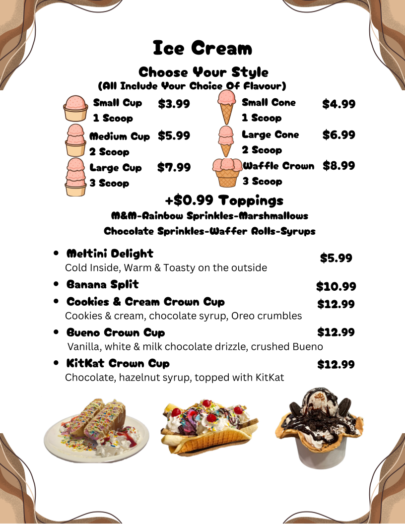 Welcome to OverTime Cafe, a charming eatery located at 1244 Wyandotte St E, Windsor, ON. This cozy spot is not just any cafe; it’s a culinary treasure with a menu that tempts and delights. Starting with their milkshakes, each flavor is crafted to perfection, like the Chocolate Rich & Velvety and Strawberry Sweet & Berrylicious, both priced at CA$11.99. The ice cream selection is equally enticing, featuring the Cookies & Cream Crown Cup and the classic Banana Split, sure to satisfy any sweet tooth.
